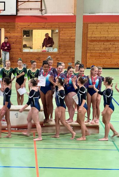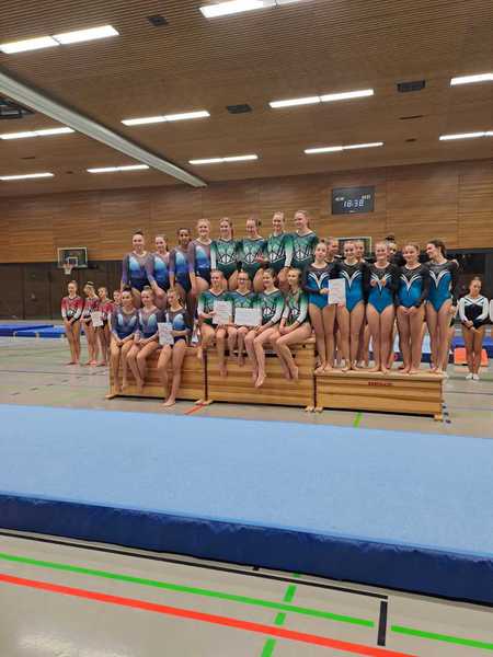 Die AK10/11 mit Sarah Hartmann, Lina Kalmbach, Ronja Kunzmann, Ronja Seeger-Armbruster, Pia Vinski, Johanna Wein, Liara Wittek erreichten mit 164,80 Punkten Platz 6. Die Mannschaft offene Klasse mit Rosi Braun, Lara Glaser, Maxima Kneißler, Jolina Wittek erturnten sich mit 155,55 Punkten ebenfalls Platz 6. Die LK2-Klasse mit Janina Barth, Lina Hawelky, Gianna Hillenbrand, Sarah Meyer, Jessica Stoll erkämpfte sich mit 129,85 Punkten Rang 4.